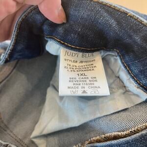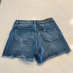 In good used condition. No stains. 4" inseam. Zipper fly with a button. Raw hem. High waisted. Women's size 1XL.