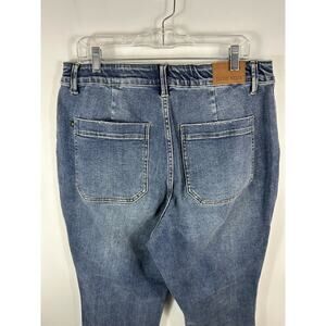 New w/ Tags. Judy Blue Denim Jogger Jeans. Medium Wash. Drawstring Feature Tie Waist. Pull On cuffed jogger style. Women's Size 14W - measurements in pics.