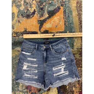 Judy Blue Denim Patch Cutoff Side Slit Shorts Size 1XL