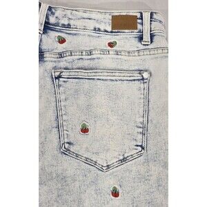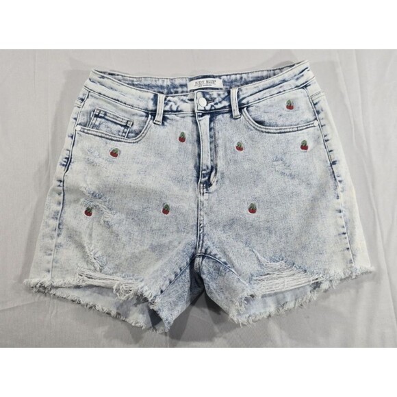 Judy Blue Denim Shorts Embroidered Cherries Distressed Stonewashed Plus Size 1XL