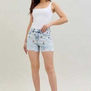 Judy Blue Distressed Denim Shorts with Embroidered Cherries