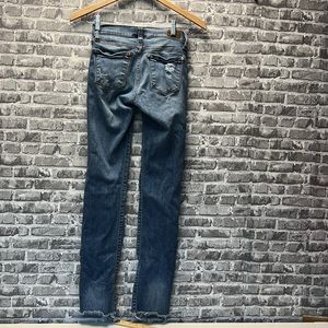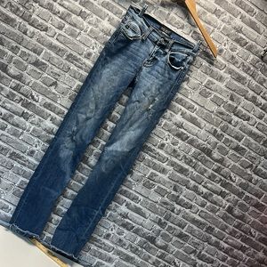 Stylish distressed jeans. Classic blue color. Perfect for casual wear.