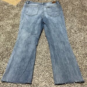 These Judy Blue Distressed Boot Cut High Rise Stretch Jeans are designed for women in size 15 with a flattering high-rise fit. Made of denim fabric with a hint of polyester, spandex, and cotton, they feature a distressed design with button accents and a classic 5-pocket style. The bootcut style adds a touch of vintage charm, making them suitable for various seasons and versatile styling options, from bohemian to city chic looks. Perfect for those looking for a trendy yet comfortable pair of jeans with a touch of 90s nostalgia.