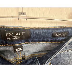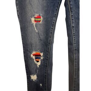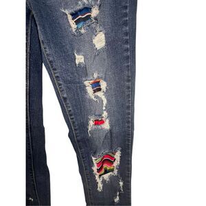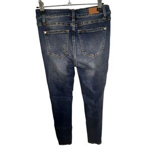 Judy Blue Distressed High Waisted Dark Wash Skinny Jeans With Striped Fabric Peeking Through