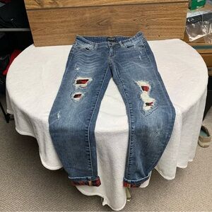 Judy Blue Distressed Jeans with Plaid Accents size 5/27 skinny fit