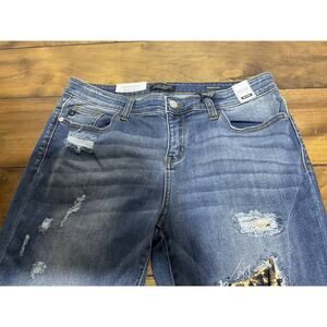 Judy Blue Distressed Leopard Patch Mid Rise Skinny Jeans Size 13/31 NWT