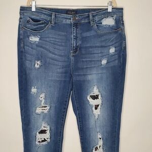 Judy Blue Distressed Patched Jeans Size 2XL Stretch Medium Wash Denim