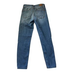 These Judy Blue distressed relaxed fit jeans (Style JB8271dk) in size 7/28 offer both comfort and style with their relaxed fit and distressed detailing. Perfect for casual wear, they add an effortlessly cool vibe to any outfit. There is some wear on the inside tag (as pictured), but otherwise, they are in great condition.