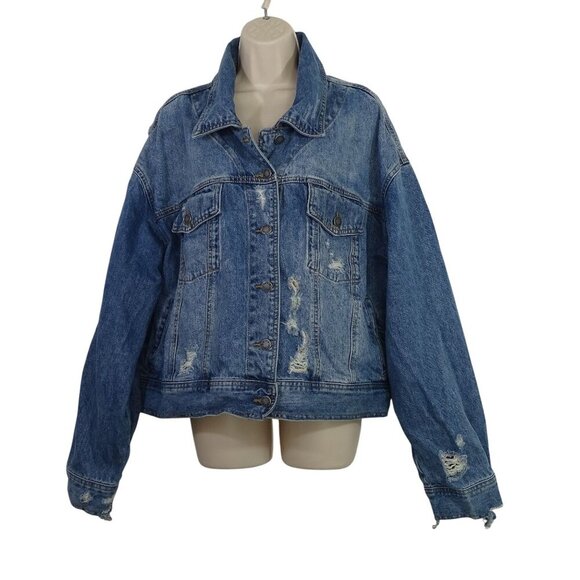 Judy Blue Distressed Ripped Denim Jacket Women Size 3XL Button Up JB7817