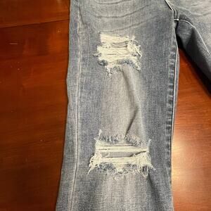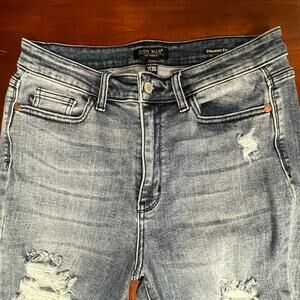 Great pair of excellent condition Judy Blue jeans in a straight leg, with distressed thighs and hems, so cute.