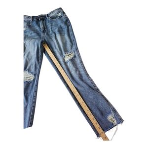 Tags/Keywords: Judy Blue jeans, distressed denim, ripped jeans, straight leg jeans, raw hem jeans, stretch denim, casual chic
