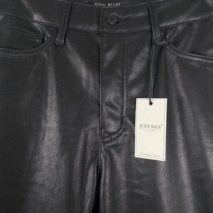 Judy Blue Faux Leather Straight Pants Size 14W Black Solid NWT PT-2127