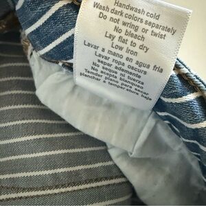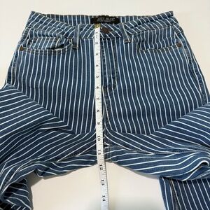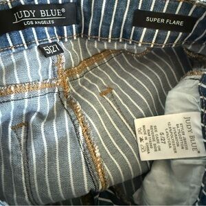Judy Blue high waisted, super flare jeans style, with blue and white stripes, bell bottom, raw hem. Great preowned condition gently used no flaws.