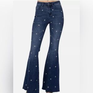 Judy Blue Flare Wide Leg Blue Jeans with Star Pattern Size 3/26 Very Stylish!!