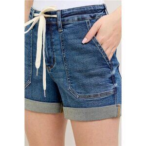 *High Rise Cuff Denim Shorts are a stylish and versatile wardrobe essential that offers a chic and casual look. These shorts feature a high-rise waist, sitting at or above the natural waistline for a flattering and comfortable fit. The cuffed hem adds a trendy touch and a casual vibe to the classic denim shorts style. Perfect for a variety of occasions, you can dress them up with a blouse and heels or keep it casual with a t-shirt and sneakers. The high rise and cuffed hem combination create a fashionable silhouette that can easily be incorporated into your summer wardrobe for a laid-back and on-trend look.