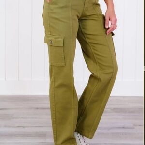 Judy Blue Green Cargo Pants Straight Leg Utilitarian
