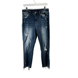 Judy Blue Hi Waist Release Hem Ankle Straight Jeans Distressed Medium Wash Womens 11/30