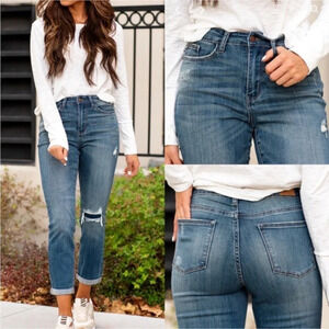 Judy Blue High Rise Denim Patch Boyfriend Jeans Medium Wash Women’s sz 3| 26