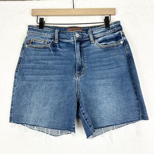 Judy Blue High Rise Denim Shorts Size Large Cutoff Medium Wash Stretch 5.5"