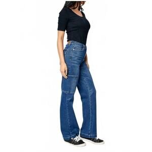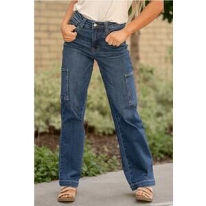 Judy Blue High Rise Wide Leg Cargo Jeans Size 13/31 Dark Wash JB88725