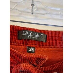 Upgrade your wardrobe with these stylish Judy Blue corduroy jeans. The high waist and ankle length provide both comfort and fashion, while the button fly closure and 5-pocket design offer practicality and convenience. These jeans are made from a blend of spandex, cotton, and cotton blend materials, which make them lightweight, breathable, and stretchy. The rust-colored jeans feature a solid pattern, with accents of button, zipper, and logo, and are perfect for any season, whether it's winter, fall, or spring. The easy-care fabric ensures that they are hand wash only, making them a durable and long-lasting addition to your closet. These jeans are a must-have for any fashion-forward woman, and they are available in size 13/31. Rise 12in. Length 34in. Inseam 26in.