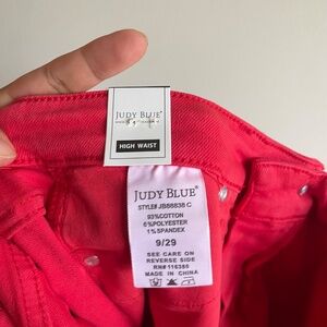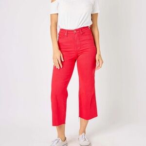 Judy Blue High Waist Garment Dyed Red Tummy Control Wide Leg Crop Denim Jeans