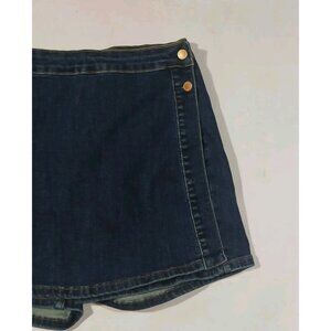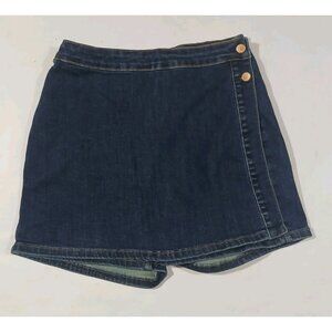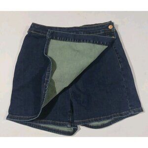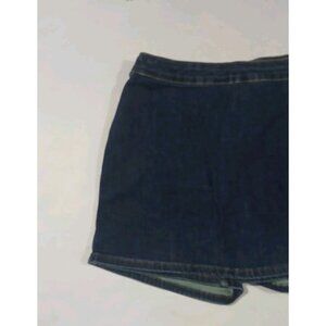 Judy Blue High Waist Mini Wrap Skort Skirt. Size Large. Dark Wash. Denim. Y2K, 90s, Academia, Preppy. In nice, preowned condition. No flaws noted. Measures approximately 15" at waist, 15" waist to hem.