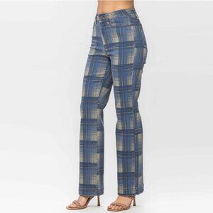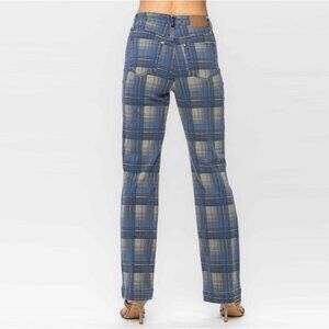 Judy Blue High Waist Plaid Print Vintage Look Straight Leg