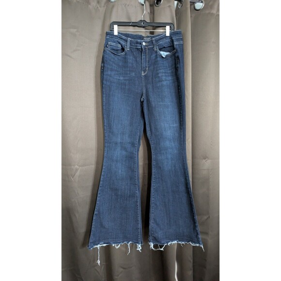 Judy Blue High-Rise Raw Hem Tall Flare Stretch Jeans Blue Denim Dark Wash 15/32