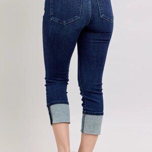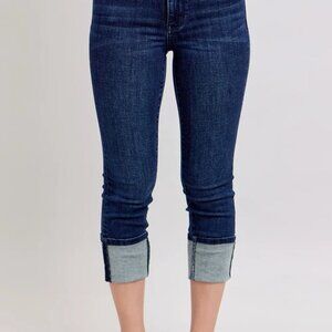 *These premium cropped skinny jeans feature a flattering high-waist design and stylish folded cuffs. Made from high-quality stretch denim fabric that provides excellent comfort and shape retention. The dark wash creates a versatile, sophisticated look suitable for both casual and semi-formal occasions. The skinny fit hugs the body from waist to ankle, while the cropped length adds a modern touch. Features classic five-pocket styling and secure button and zip fly closure. The contrasting cuff detail adds visual interest and styling versatility.