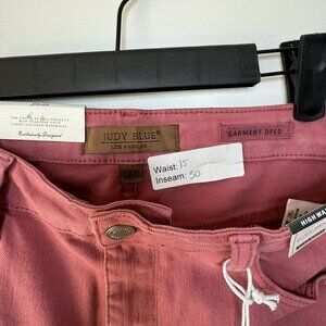 Judy Blue High-Waisted Jeans Crochet Patchwork Knee Pink Mauve Sz 13 31 NWT