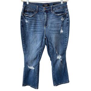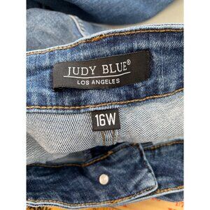 Judy Blue Jean Plus Size 16W Capri Fit Medium Wash Distressed Stretch Denim Blue