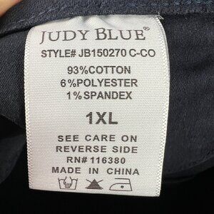 You are purchasing Judy Blue Jean Shorts Women's Plus Size Measured 34* High Rise Bermuda Dark Blue Faded Stretch Denim Jorts Tagged 1XL Extra Large