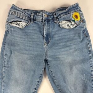 Judy Blue Jeans 16W Embroidered Sunflower Cuffed Ankle Light Wash Denim