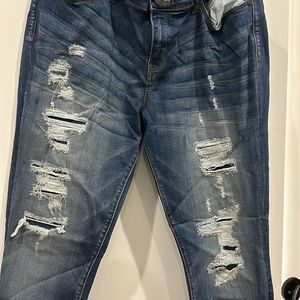 Distressed Judy Blue jeans. “Skinny fit.” Very stretchy