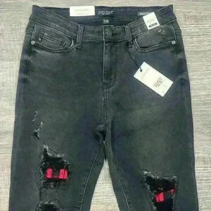 Judy Blue Jeans 7/28 Black Red Buffalo Plaid Check Cuff Skinny Fit Distressed