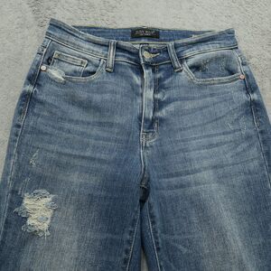 Judy Blue Jeans Junior's 1/25 Mid-Rise Relaxed Straight 25" Inseam Destroyed Stretch