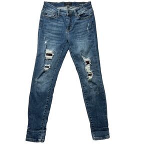 Judy Blue Jeans Skinny Fit Buffalo Plaid Distressed Peek-A-Boo Women's 7/28