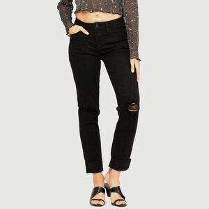 Judy Blue Jeans Slim Fit Mid Rise Boho Destroyed Black Raw Hem Stretch Size 13 / 31 #JB88137