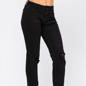Judy Blue Jeans Slim Fit Mid Rise Boho Black Stretch Raw Hem Sz 13 / 31 #JB88137