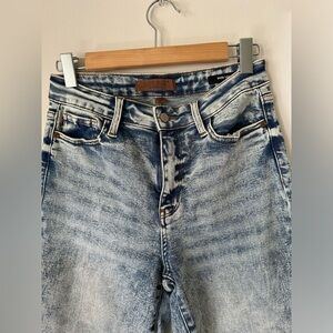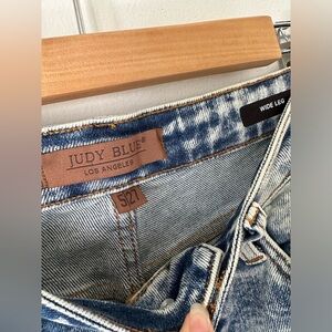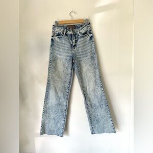 Judy Blue Jeans Sz 5/27 Acid Mineral Wash Wide Leg Raw Hem Retro Coastal Cowgirl