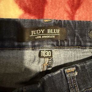 The product is a pair of Judy Blue jeans in size 11/30, featuring a solid blue denim fabric wash with a high rise and a regular fit. These plus-size jeggings are made from a comfortable cotton blend material with stretch for added flexibility. They are machine washable and can be worn in all seasons. The pull-on style makes them easy to put on and take off, making them a convenient addition to any woman's wardrobe.