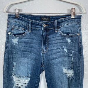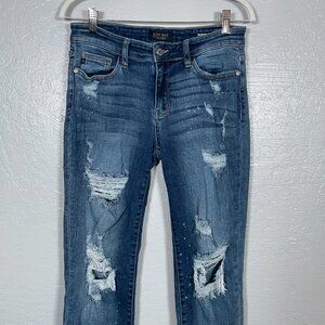 Judy Blue Jeans Women 7/28 Boyfriend Fit Distressed Mid-Rise Medium Wash Denim
