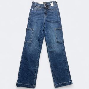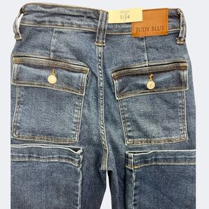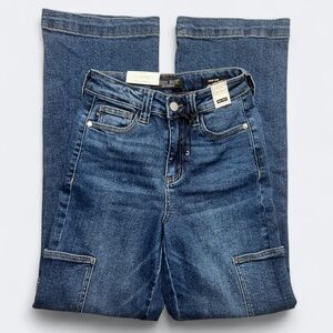 Judy Blue Jeans Womens 0/24 High Waist Wide Leg Cargo Pockets Stretch JB88725