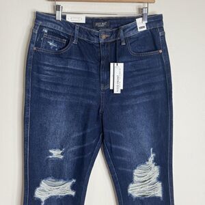 Judy Blue Jeans Womens 13/31 Dark Rigid Front Stretch Back Distressed Raw Hem