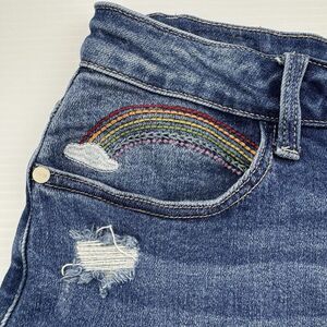 Judy Blue Jeans Womens 14W Straight with Rainbow Embroidered Pocket Distressed