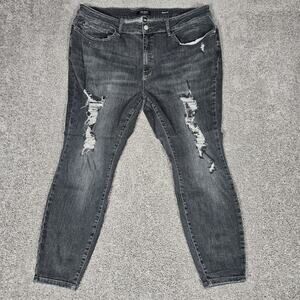 Judy Blue Jeans Womens 24 Faded Black Daisy Distressed Skinny Fit Stretch Boho
