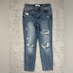 Judy Blue Jeans Womens 3 Lillian High Rise Slim Fit Light Wash Distressed Holes