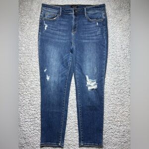 Judy Blue Jeans Womens 32 High Rise Slim Fit Distressed Stretch Knee Holes Party