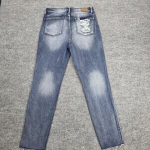 Judy Blue Jeans Womens 5 27 Blue Relaxed Fit Distressed High Rise Raw Hem Denim